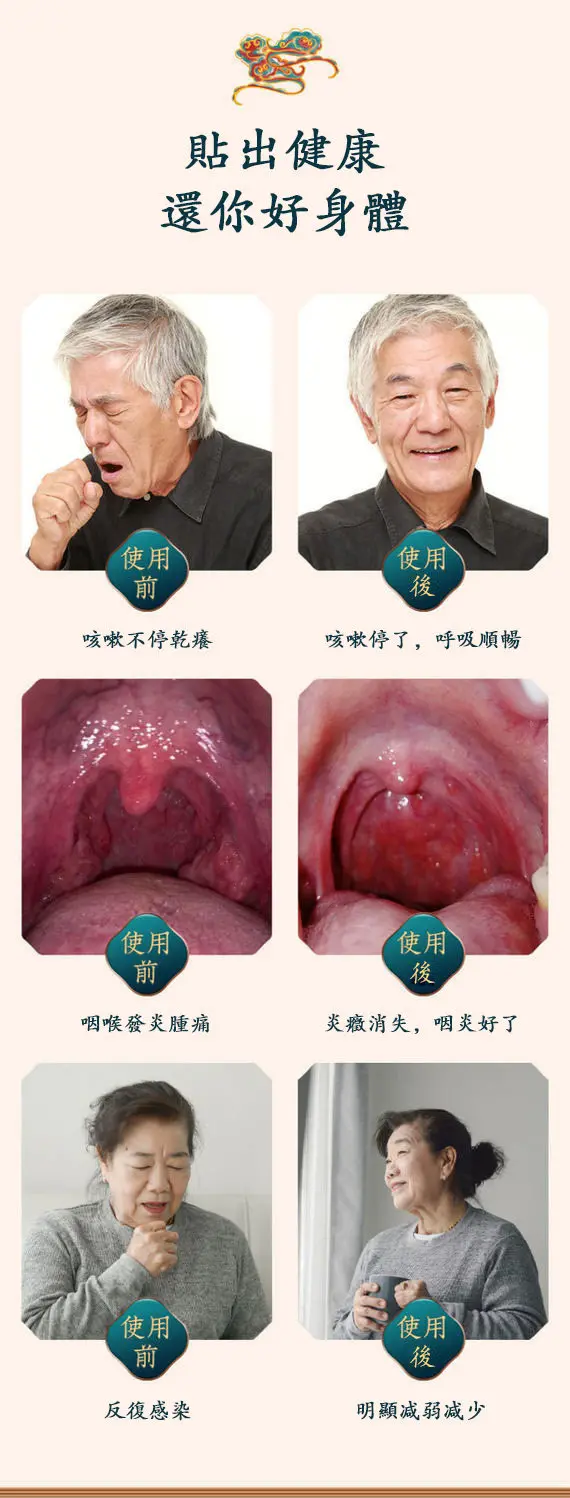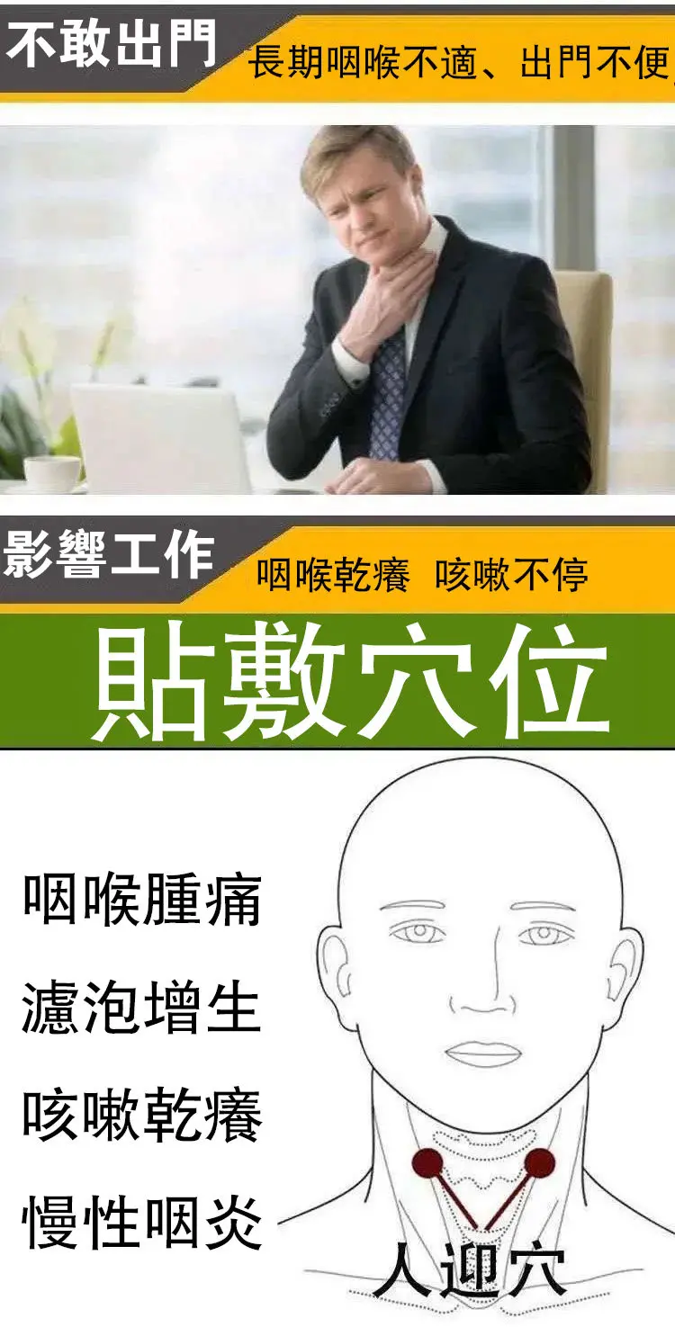 風火貝康咽炎貼是中藥組合包括外用吹喉藥利咽散和外用穴位貼敷藥治療咽喉腫痛,除根咽喉炎貼神器,純中藥咳嗽貼通過貼敷大椎穴和天突穴來刺激相應經絡,使氣血通暢,陰陽平衡,貼一貼,輕鬆治癒咽喉炎、咽喉腫痛、扁桃體炎,3天緩解,7天根治。